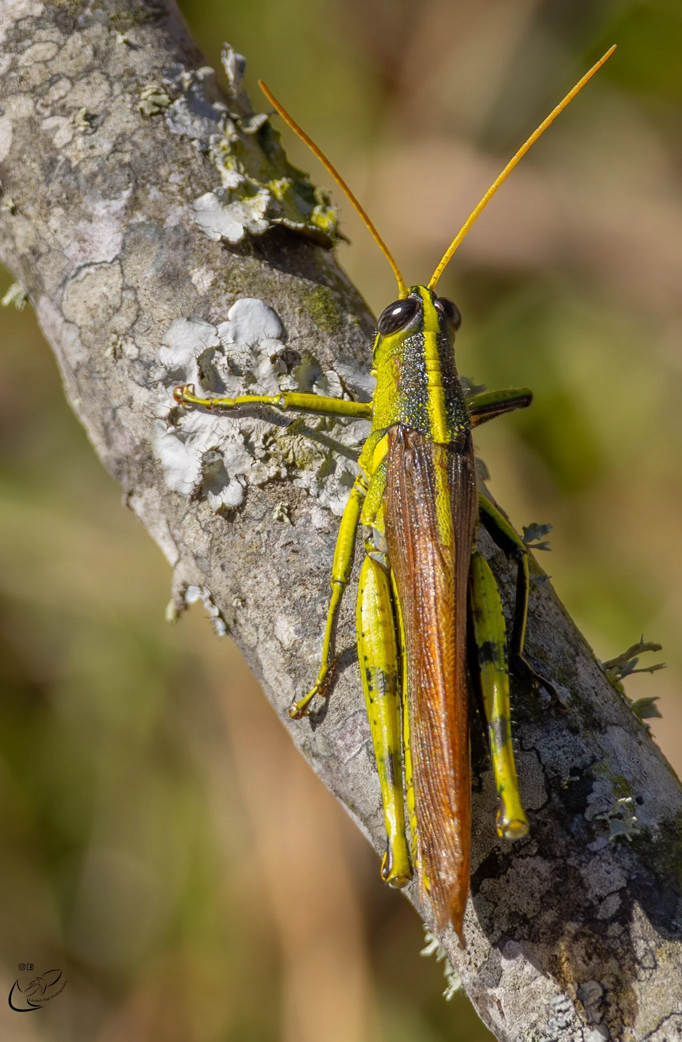 Close-up of a grasshopper on a branch