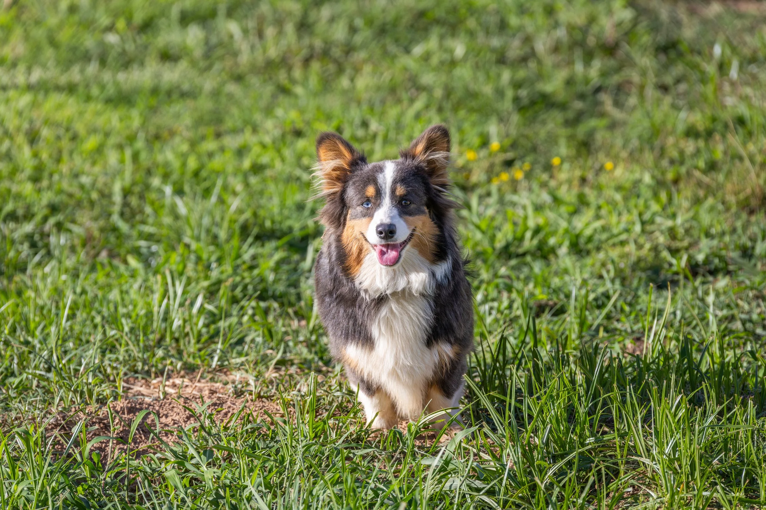 Corgi dog running on grass